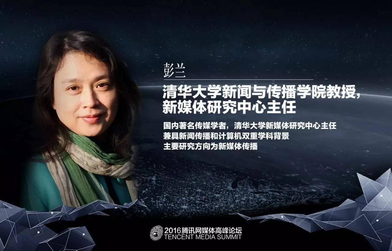 彭兰,女,出生于1966年10月。2006年,入选教育部“新世纪优秀人才支持计划”和北京市社科百人工程。 博士毕业,现任中国人民大学新闻与传播学院教授、博士生导师、中国人民大学新媒体研究中心主任,兼任