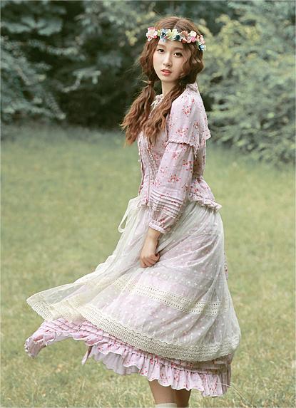 Classical系Lolita洋装所选用的布料虽然也喜欢以纯色为主,但它所使用的纯色料子一定都有着素雅得体又不刺眼的色调。除开白、黑、粉、蓝这四个基本色之外,各式各样美丽的碎花布也是Classical系洋装布料的爱用之选。