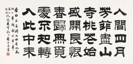 我们没必要谈所谓的创新,深入的认识隶书传统更有现实意义。只要我们认识并理解了一些隶书的传统,并完成隶书的传统和现代的纽带式连接,那么我们才有可能创造出既古典又现代的隶书作品。在这里所谓的古典就是隶书的发展延续形态,所谓的现代,就是隶书的现代审美意识和文化精神。古典——现代具有全息重演的内容,但还不完全是周俊杰先生所倡导的新古典主义。因此,我所说的古典和现代,具有把古典放在新的时空匡架进行梳理归类和时代诠释的意识。它可能是反传统的,因为我们是站在时代立场审视传统。它也可能是继承传统的,因为传统在影响着我们。